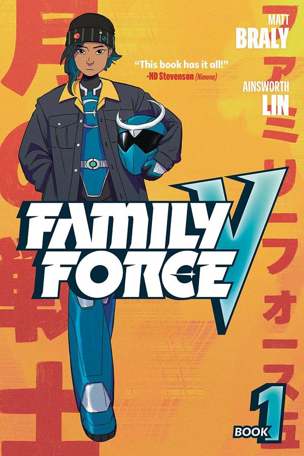 Fighting alien kaiju with your family on a Friday night is a totally normal part of being a teenager... right? Well, it is for Maise, who, despite her protests, continues the family legacy of keeping the world safe, all while trying to get good grades, impress her crush, and balance extracurriculars. But growing up in this family means Maise must live up to the expectations of those she's destined to protect while not losing herself in the process. Matt Braly (Disney's Amphibia ) and Ainsworth Lin team up for the YA graphic novel of the year full of action and charm in Family Force V!