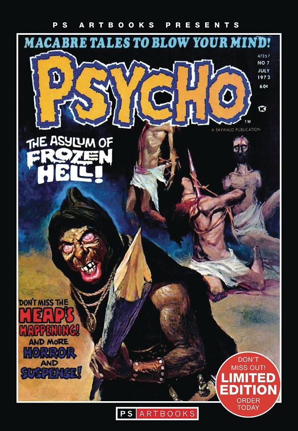 , Pablo Marcos, Pat Boyette, Vicente Segrelles, Dennis Fujitake, Ramon Torrents, Jim Pinkoski Absolutely packed full of horror and suspense Skywald's black-and-white comic magazine Psycho #7 (July 1972) with macabre tales to blow your mind! Featuring a fantastic cover by Vicente Segrelles based on "The Asylum of Frozen Hell" by Al Hewetson and Pablo Marcos. Who also bring us The Heap in "A Spawn of Satan." Plus the combined talents Domingo Alvarez, Denis Fujitake, Bill Everett, Pat Boyette, Syd Shores, Steve Englehart, Jim Pinkoski and Ramon Torrents. And all reproduced here completely like the original comic magazine!