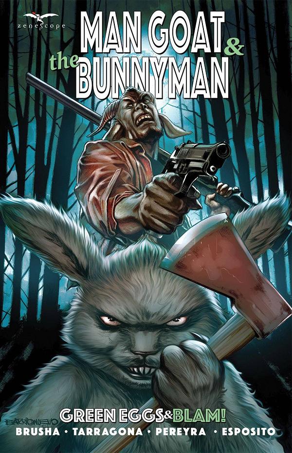 When secrets are revealed about Floyd's past in this epic coming-of-bunnyman-age tale filled with betrayal, dogmen from another dimension, a Jackalope, and even a mad scientist bent on world domination (starting with the ruining of Easter for everyone)--who can we count on to save us?! Only the greatest monster-fighting team ever-- Man Goat and the Bunnyman! These cryptid best-buds are back and are ready to save the world again...if they don't kill each other first. Also included in this bonkers slathering of comic glory: Phil and Floyd go on a dangerous and insane adventure to rescue the Bunnyman's long lost father from the clutches of an evil magnate who plans to expand his ever-growing monster collection--and has even far worse plans for our two heroes! Collects Man Goat & The Bunnyman: Green Eggs & Blam! #1 - 3 and the Man Goat & The Bunnyman: 2023 Spring Special
