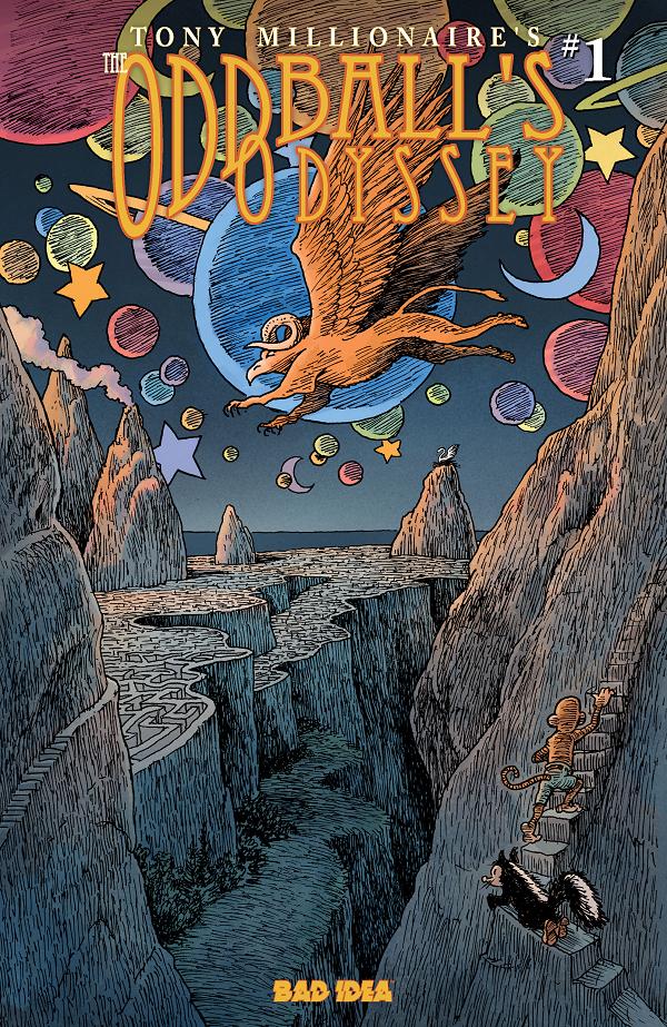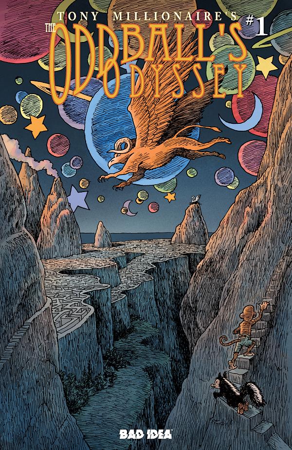 Tony Millionaire – winner of five Eisner Awards, three Harvey Awards, and an Ignatz – is the visionary cartoonist behind the critically acclaimed Sock Monkey graphic novels and the world-renowned Maakies comic strip. Collaborating with superstar colorist Jim Campbell (OVER THE GARDEN WALL), Millionaire nimbly fuses the master storytelling of Homer's The Odyssey with the surreal beauty and intricately rendered linework of Moebius's Arzach to deliver this breathtaking masterpiece. Divine providence has finally done what no hangover ever could – Bobby Dougherty is sober. But fate works fast and it’s not long until Bobby tumbles back off the wagon. A single glance at the radiant swan Lucia Serena DelMar leaves the former booze-hound monkey drunk on love and hopelessly devoted. When Lucia takes flight, Bobby refuses to let his chance at love slip through his fingers. Joined by his faithful friend Jimmy Skunk, he sets off on a perilous journey across distant lands – through impossible labyrinths, over treacherous seas and into the path of a vicious, fire-spitting minotaur in an epic quest to win Lucia’s heart.