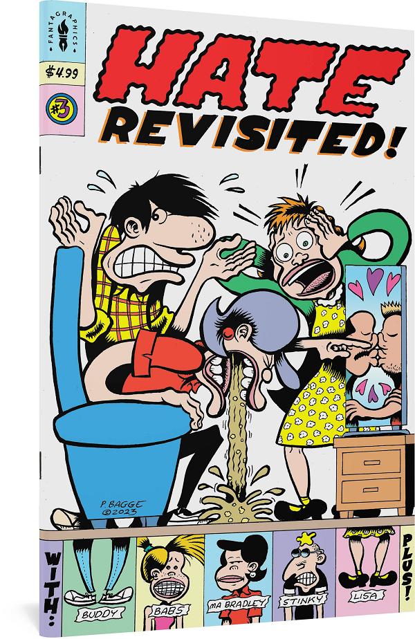 The all suburban-New Jersey issue! Weaving between 1985 and the present day, the third issue of Peter Bagge's triumphant return to Hate spans three generations of the Bradley family and friend circle. Ma 'MAGA" Bradley has moved into an assisted living facility, and when Buddy and Lisa pay an obligatory visit, they discover that Stinky's mom lives there as well, forcing Buddy to face his lingering guilt over Stinky's death. Meanwhile, in flashback, teenage Stinky proves every bit as prone to recklessness as he did as an adult. Hate is back and more fiercely funny than ever!