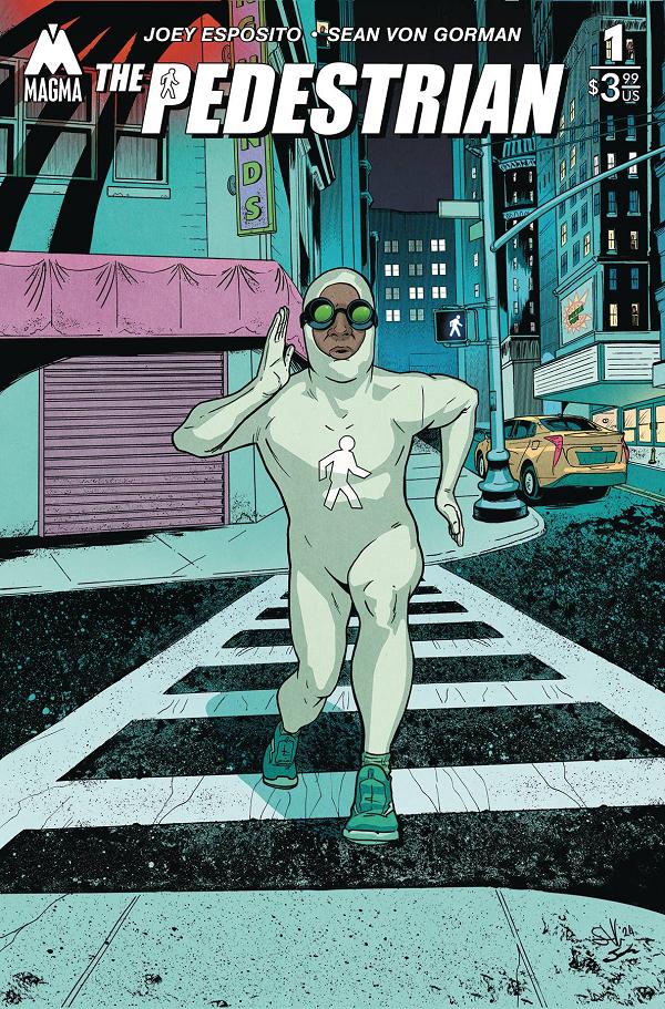 Behold, The Pedestrian! A strange visitor speedwalks into Summer City and silently changes the lives of its residents. But not all is quiet in this sleepy, small town-an ancient conflict linked to the secret history of street signs is brewing! DON'T WALK... RUN! In The Pedestrian, justice always has the right of way! Writer Joey Esposito (Batman: Urban Legends) reunites with Pawn Shop collaborator, artist Sean Von Gorman (Batman Beyond), for an offbeat tale that will stick with you!