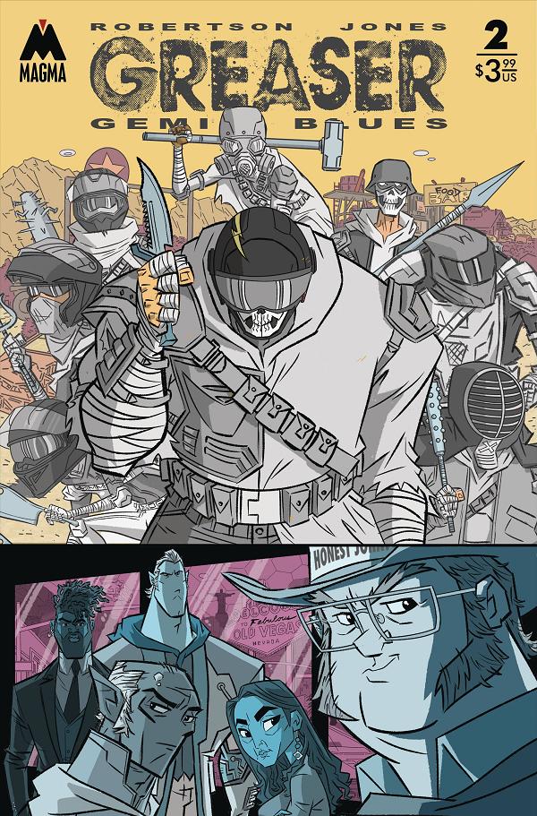 A mysterious AI robot with a ton of emotional baggage turns Buddy's world upside down, when he finds out that she is the key to a massive conspiracy that threatens the very existence of the remaining human race. From writer Darick Robertson (The Boys) and artist Stephen B. Jones (Batman Beyond), Greaser is the next Magma title to blow your mind!