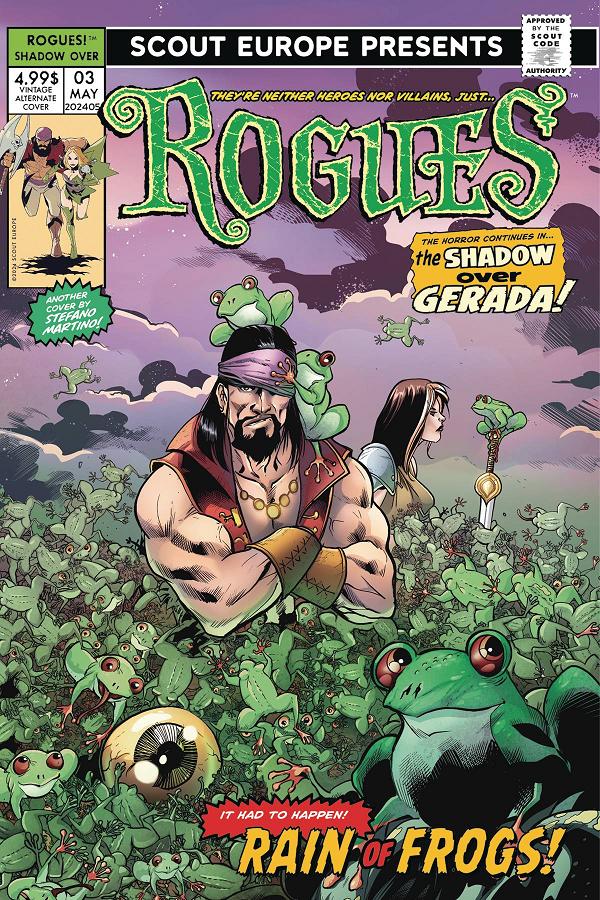The Rogues face their most eldritch challenge yet! Bram and Weasel forge an unholy alliance with the Mouth of Elders - also called Moe - in a daring quest to retrieve the Necronomicon from the Crypt of the Gods. As Lovecraftian horrors invade Gerada, an ominous omen unfolds and the sky weeps... with a rain of frogs!