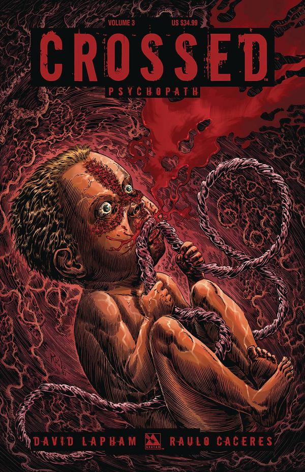 The long-awaited third volume of Crossed is finally here, collecting all seven issues of the Psychopath series by David Lapham and artist Raulo Caceres! In one terrifying moment, civilization crumbled. An outbreak of insanity swept across the planet, turning millions of people into the scarred homicidal maniacs known as "the Crossed." For one small band of survivors, the discovery of a starving, injured man in the desert seems like an unexpected blessing. He knows where they could be safe: the location of the last holdout of the scientific community, where the military offers protection and the cure to the Crossed plague is being developed. But Harold Lorre is not the savior they hope him to be. He's a calculating, lethal man whose mind was dangerously unhinged even before the world went mad. Surrounded by marauding hordes, their nerves shattered by unending fear, the group fall victim to the manipulations and deadly perversions of a psychopath. Writer David Lapham, the critically acclaimed creator of Stray Bullets, returns to the universe of Crossed with a descent into evil so far beyond what you could possibly imagine. Available in three editions: as a TPB or Hardcover with new covers by series artist Raulo Caceres and also a Signed Hardcover, with a new Caceres cover, signed by writer David Lapham and limited to just 1000 copies!