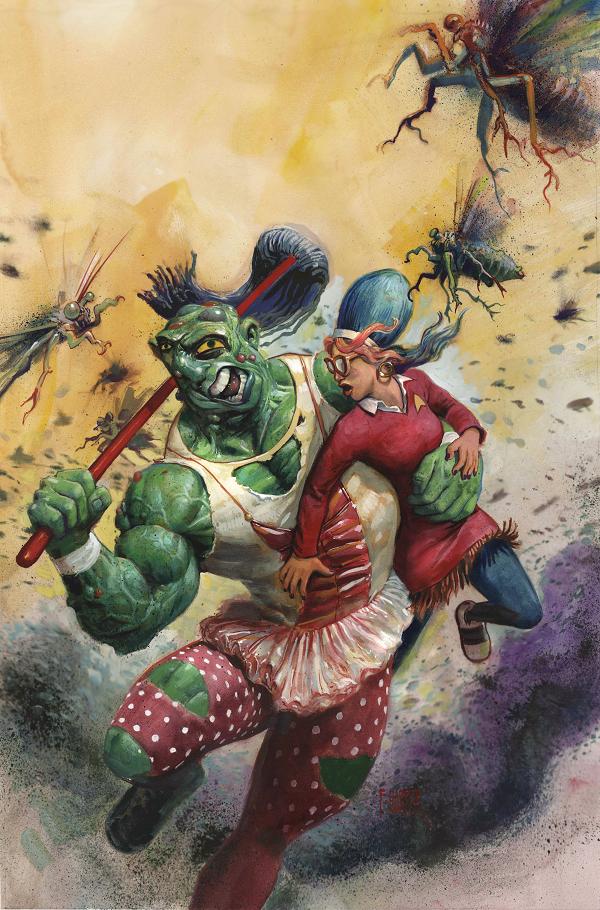 Fists! Swords! Blood and eyeballs! The hit series by Ennis ( The Boys ) and Burrows ( Get Fury ) concludes with Babs locked in final combat against Lord Tiberius and his horde of White Knights! Will somebody's janky nasty bits play a decisive role in the ultimate battle? What do you think?
