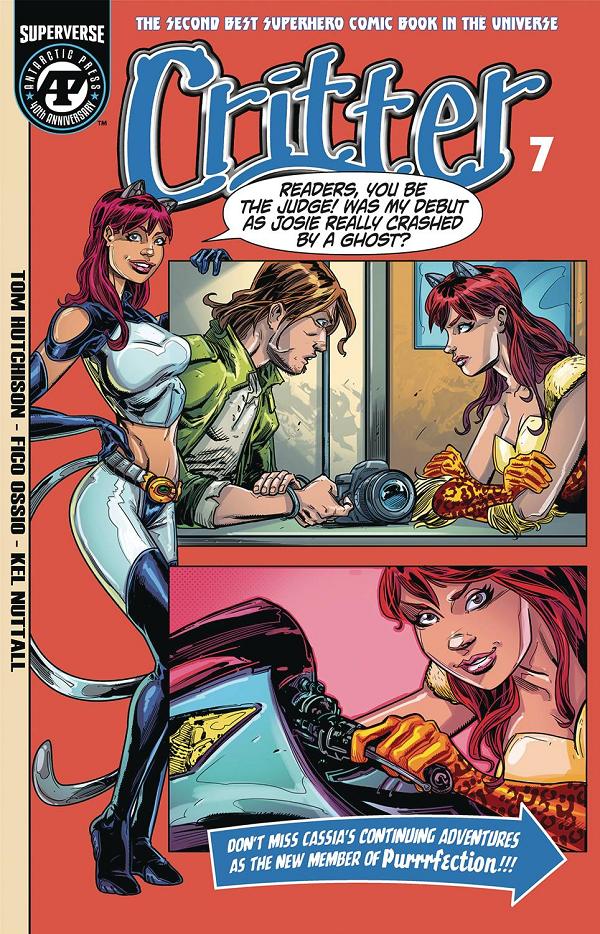 AP SUPERVERSE TITLE! SECOND NAME, SECOND COSTUME, SECOND LIFE FOR SECOND-BEST SUPERHERO! FIRST-TRY FAILURE IS NOT THE END! Critter tries to settle into her new surroundings with the catgirl super team Purrrfection, but a night on the town may just be the start of beautiful relationship with the team's photographer.