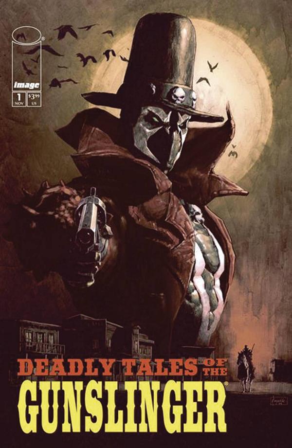 One of the most mysterious characters in the Spawn Universe is the Gunslinger Spawn. In DEADLY TALES, his true origin is finally revealed in full. Written by superstar creator JIMMY PALMIOTTI, with art by the exceptional PATRIC REYNOLDS, see the true origin of the deadly Gunslinger Spawn. From the character's first appearance in SPAWN #174 to his adventures in the present day, all will be laid bare to the reader. The series, set in the past before the Gunslinger is pulled to the future, unravels his place in the Spawn Universe. It is a brutal tale of Old-West violence and mayhem by two of the comic industry's finest.