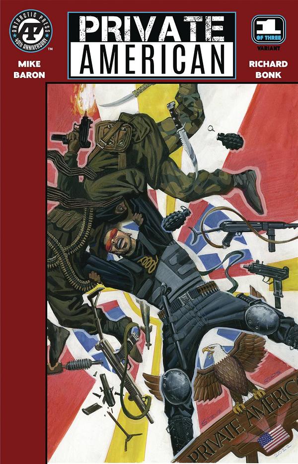 ONE MAN VERSUS THE TIDE OF TERROR STRIKING FROM THE SOUTH! NEW PATRIOTIC FERVOR FROM PUNISHER VETERAN MIKE BARON! With the situation at the US/Mexico border spiraling out of control, leaving Border Patrol agents overwhelmed and powerless, a lone vigilante takes on the drug smugglers, gun runners, and sex traffickers! Eisner-winning comic book writer Mike Baron (Punisher, Nexus, Flash) and veteran comics illustrator Richard Bonk (Superman, Teen Titans, Witchblade) combine The Punisher and a classic star-spangled Avenger for one of their most explosive action tales ever!