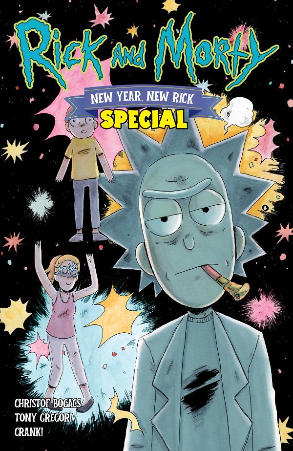 4-3-2-1! HAPPY NEW YEAR . . . WE THINK?!?! From writer Christof Bogacs (United Kingdom) and illustrator Tony Gregori (Teenage Mutant Ninja Turtles) comes a New Year's special featuring a gargantuan 56 pages of not-so-SFW madness! Rick Sanchez, eternal a**hole and pompous egomaniac, has made a New Year's resolution to . . . be nice? But without Rick's jerkiness to keep it at bay, the Cosmic Code Authority-a godlike being determined to make the universe as family-friendly as possible-starts to censor all of reality! It's up to Rick to save the day (again), but it'll come at the cost of abandoning his New Year's resolution.
