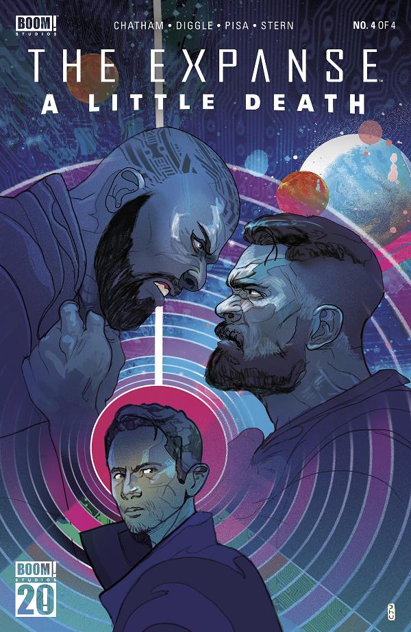 It’s the final issue of the groundbreaking series as we reach the endgame to Amos’s path of vengeance! Amos comes face-to-face with the ominous presence that’s been orchestrating every move in his one-man war against Auberon’s criminal underbelly. But the shadow in the dark is no stranger…and it’s a face he knows all too well. Don’t miss as the creative team of actor and writer Wes Chatham, co-writer Andy Diggle, and artist Francesco Pisa go full burn on this incredible finish to Rocinante’s latest adventure!