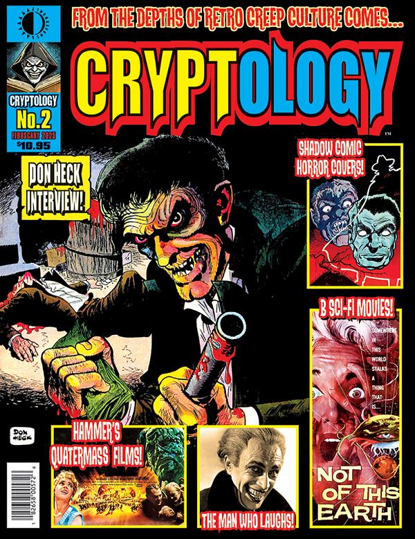 "Heh-heh-heh, it’s me again—the Cryptologist—and my ghastly little band have cooked up a few more grisly morsels to terrorize you with! Amongst them is Roger Hill’s conversation with diabolical horror (and superhero) comics artist Don Heck! For something even more gruesome, Steven Kronenberg slices up his favorite severed hand films! Barry Forshaw brings back the otherworldly horrors of Hammer’s Quatermass, while Tim Leese spends more Hammer Time on that studio’s output. Then, editor Peter Normanton prepares a viewing of horror-inspired covers from the Shadow’s own 1940s comic book! We’ll cover another Killer “B” movie classic, Conrad Veidt and “The Man Who Laughs!,” along with more pre-Code comic books, and Pete Von Sholly offers his twisted take on cartoon horror. So peer into the dark side with TwoMorrows Publishing’s latest terror—scribed just for retro horror fans!"