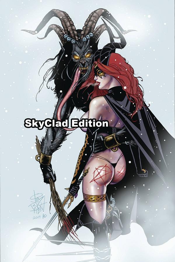 Only 100 of these card stock high quality variant Skyclad covers to Jim's "The Yuletide Monster Mash" the story of when Spellerella brings The Krampus into her world of animated Monsters! Soon she realizes that the Krampus is too much for her to handle so she conjures up Tarot to help stop the yule devil!. Comes bagged, boarded, numbered, and signed by Jim with a COA. A Perfect Collector's self care treat.