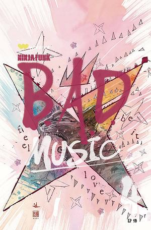David Mack, known for his work on Marvel's Daredevil, Jessica Jones , and for co-creating their series Echo , delivers his signature watercolor style to the continuing adventures of Ninja Funk. B.B. finally confronts the Queen face to face while Mcfly scrambles to back her up and defeat B.A.D. Music once and for all! It's a straight up battle between good and bad, right?! Meanwhile Lazerwolf, Kairi and Wolfgang charge to the home of BAD Music. Will they show up in time to back up Mcfly and bring B.B. home, or will they be too late? B.A.D. Music crescendos in this stunning finale!