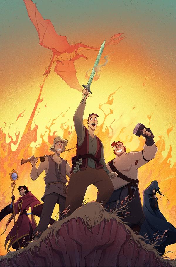 From Viva La Dirt League and Bad Egg comes the biggest fantasy tale of the year: EPIC NPC MAN: HERO OUTAGE #1! Based on the hit streaming show, Hero Outage features the heroic stylings of the heroes of Honeywood, a humble crew of farmers, fisherfolk, and blacksmiths. Can these NPCs level up and save the world of Azerim from falling into the worst fate of all: utter boredom? From superstar writer Fred Van Lente and featuring the eye popping art of Bailie Rosenlund, Hero Outage #1 is an eighty-page fantasy epic! Main cover by Bailie Rosenlund, B cover by Steph C.