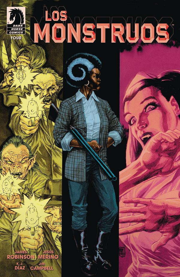 In the city of Los Monstruos, werewolf P.I. Perry Cutter had thought he'd seen it all. But now he's in a deadly trap facing crooked vampire cops on all sides, with a surprise villain pulling the strings and no way out. It'll take a miracle or a man-monster to help him survive the night. Will Perry solve the case? Will he finally get that date with Rosie the vampire waitress? Find these answers and much, much more in the exciting final issue of the first horrific arc of Los Monstruos.