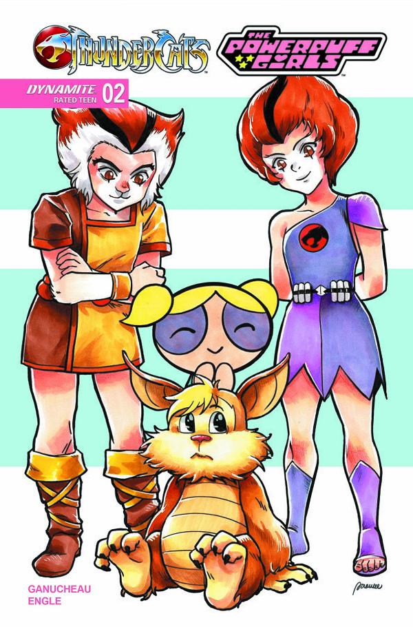 THE MYSTERY OF THE MISSING THUNDERCATS DEEPENS! After being transported to Third Earth (where their powers don't work) by the malicious Mojo Jojo, the Powerpuff Girls have teamed up with locals Snarf and Tygra to try and figure out how to get home to Townsville. But they've also discovered that there's evil afoot in this strange new land - and what kind of heroes would they be if they didn't stay and help? The Titanic Trio soon discover that things are even weirder on this world than they first appeared. Following an altercation with more crystal-possessed creatures, the girls and their 'Cat companions find themselves following a mysterious signal while riding on the back of a giant Arietta bird. Their ultimate destination has yet to be determined - but knowing this crew, whatever awaits them will be equal parts perilous and adorable! Interdimensional tour guides PAULINA GANUCHEAU and COLEMAN ENGLE hit all the hottest sights in ThunderCats/The Powerpuff Girls #2 - with complimentary souvenir covers available from GANUCHEAU and ENGLE as well as CORAN KIZER STONE, SAOWEE, and NICOLETTA BALDARI!