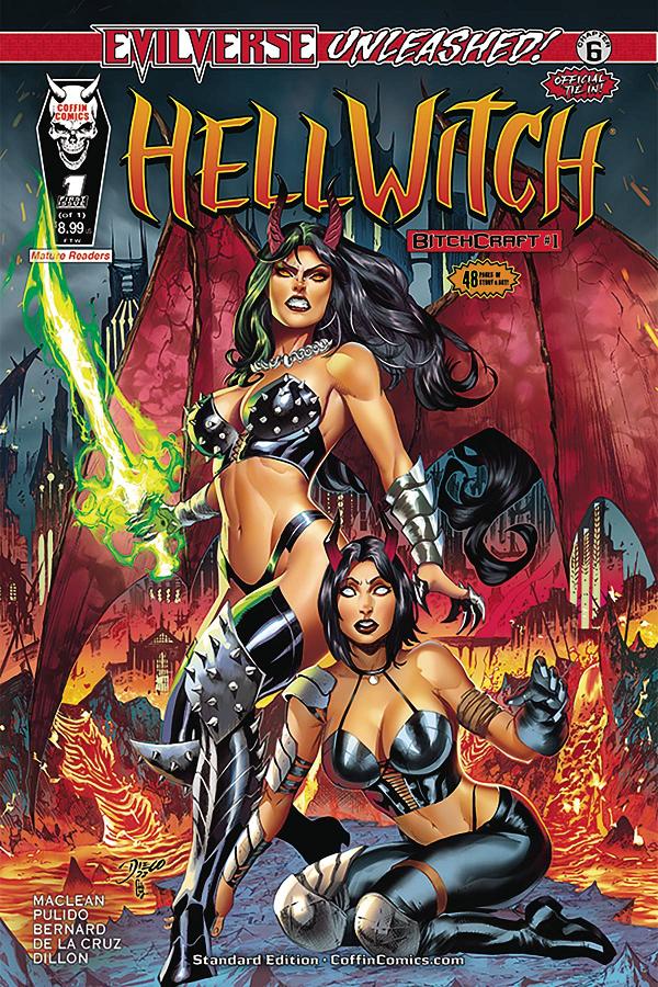 Chapter 6 of Hellwitch's story! To save her lover Nikita, Hellwitch must journey back to Hell and fight alongside a mortal enemy-Angelvex, an angelic hybrid with extraordinary powers. Can Hellwitch defeat an army of ruthless Hellbourne assassins bent on revenge? Or will she fall prey to the traitorous machinations of a once trusted ally? 48 pages of story & art!