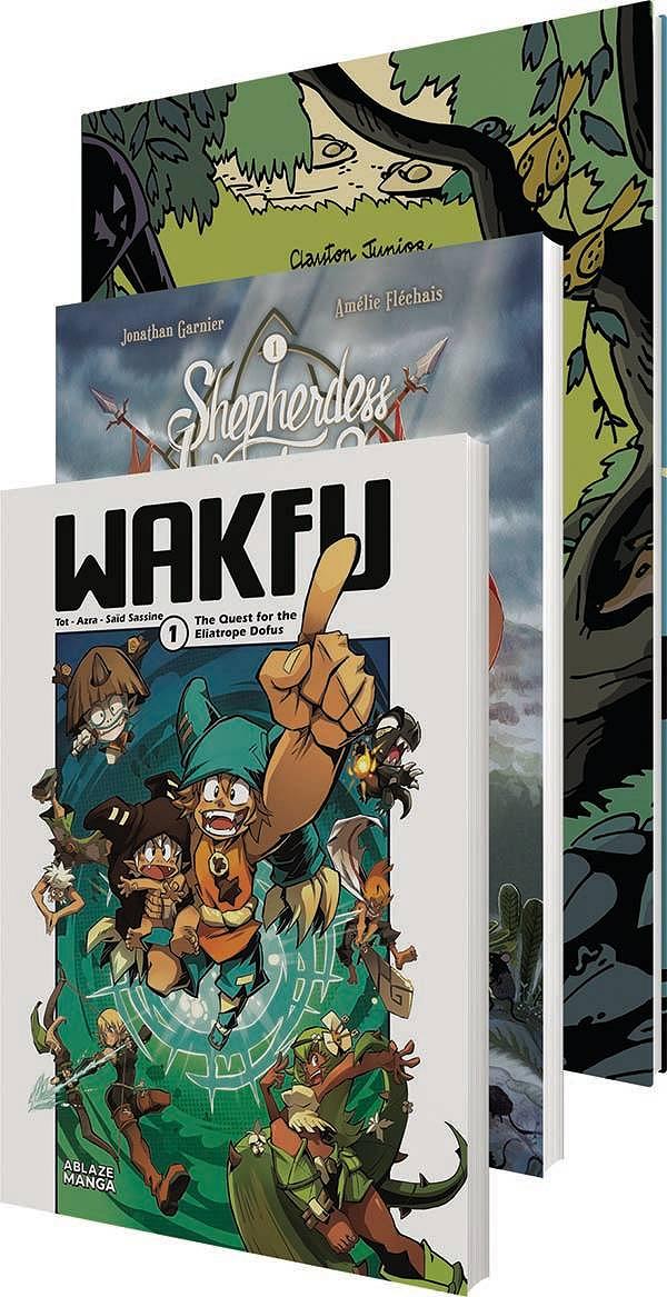 (CA) VARIOUS ABLAZE is shining the spotlight on the wide variety of genres and fantastic works within our catalogue! Our Spotlight on Kids' Stories includes three comic titles - Shepherdess Warriors Vol. 2, Wild Thing, Or: My Life as a Wolf, and Wakfu Vol. 1 - bundled together under a specially discounted price. In Shepherdess Warriors Vol. 1: It's been ten years since the men of Molly's village left to fight in the Great War, a mysterious conflict in a faraway land. For ten years, there's been no news of their fates and, in the meantime, the remaining women have formed a protective force to safeguard their lands and neighbors: The Order of the Shepherdess Warriors. Now ten years old, Molly and her friends are inducted into the Order and eagerly train to become the next generation of guardians. But the status quo is shifting once again, and a mysterious beast stalks the village... In Wild Thing, or: My Life as a Wolf: An affectionate and inquisitive Labrador named Silver, who grew up on a farm with his master and his hundreds of sheep, dreams of adventure. What is beyond the hills? Where does the river flow? Which animals live in the forest? So many questions without answers... One night, Silver meets a trio of hungry wolves. Attracted by their unhindered lifehe decides to follow them, and he learns to live the wild life with the pack. In Wakfu Vol. 1: The adventures of the Brotherhood of the Tofu continue! Yugo, Ruel, Percedal, Amalia and Evangelyne are now living their lives, each on their own. The adventurers reunite at Alibert's for Yugo and Adamai's birthday, launching this latest saga when a party pooper comes to interrupt the celebrations and force our friends to set off on the road once again for adventure!