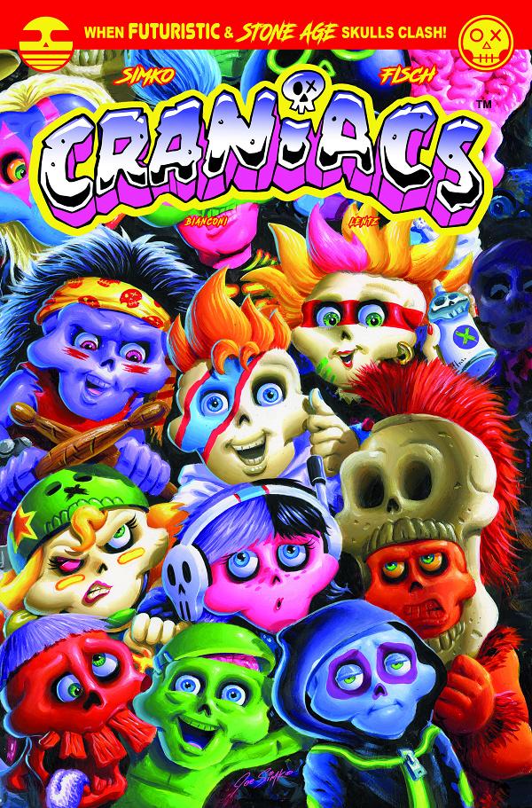 From the collective, creative Craniums of Ira Friedman (Ex-Topps) and Joe Simko (Garbage Pail Kids) comes Craniacs, a refreshingly new and totally original comedy/action/adventure that has blasted its way across collectible trading cards and now into comics! In the Craniacs universe of skull-headed folks, two planets collide and force two very different societies – Stone-Aged Retrovia and ultra-futuristic Futerra – to figure out how they’re going to make this new planet-sharing world order work! Innovative high-octane action, wacky physical comedy and outrageous competitions will be at the heart of every issue, alongside the importance of friendship, fraternity and family. The graphic novel collections all four issues of the comic book series and is presented with exclusive bonus interviews and artwork!