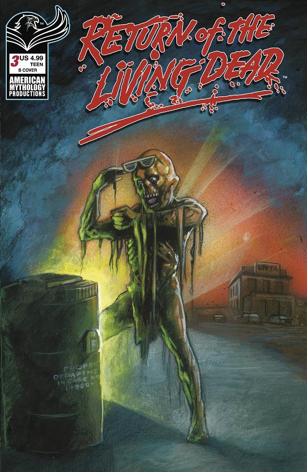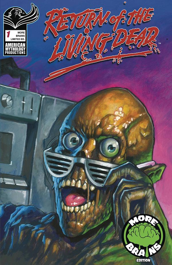 Just when you thought it was safe to go back to the cemetery, we deliver a brand new sequel story to the original movie! The movie that changed what we know about zombies and helped to create a whole new genre in modern horror! What do you get when you mix a pack of party-hungry skateboarders, and a group of summer interns left alone in an amusement park overnight? How about we throw in a couple misplaced barrels of Trioxin-245? It's zombie comedy horror action - 1980's style! The mega-cult classic Return of the Living Dead returns with a bold new comic book adventure capturing the Brains, the Blood, and the Fun of the original 1985 film. You think this is a #!@#* comic? This is a way of life! American Mythology Comics proudly presents Return of the Living Dead "Party Time"! Send...more...readers!