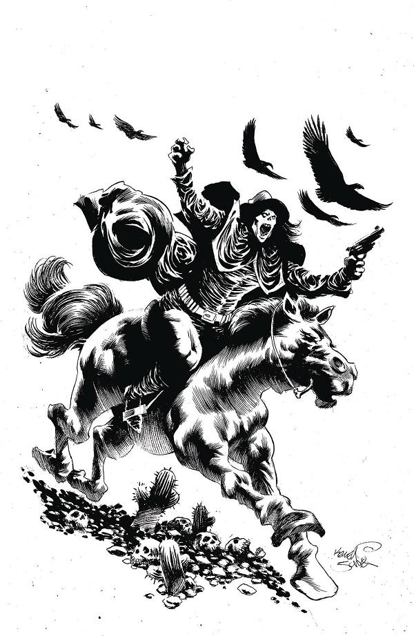 Skeletal outlaws! Demonic coachmen! Quick drawing masked monsters! Step back in time with us to the haunted Old West where the monsters aren't just the outlaws. Three new terrifying tales of two-gun justice and creature carnage are on tap told in glorious stark black & white! G.O. Parsons (writer of the Willy's Wonderland Movie) and Jason Craig (Freddy vs Jason vs Ash) deliver a devil's bargain that will leave you dying for more in "The Coachman". Strap on your spurs and load the silver bullets - these stories are going to leave scars! Available with three covers - Main by Jason Craig, Demons by The Corpse Crew (Buz Hasson & Ken Haeser), and a special Dead Sheriff cover by Buz Hasson!