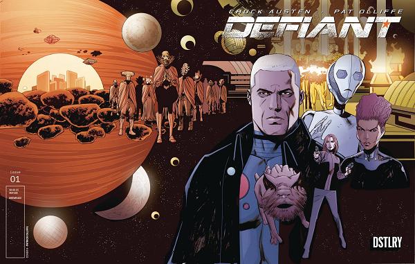 NEW DSTLRY SCIENCE-FICTION DEBUT FROM CHUCK AUSTEN (Edgeworld, X-Men, Superman) and prolific Marvel and DC artist PATRICK OLLIFFE! On his final mission, Sandusky returns to the stars to reclaim his son Devon's body and uncover the truth surrounding his death. Light years from home, among a cascade of twisted metal, Sandusky finds Devon - his body entombed in the remains of his ship, The Defiant-lost in a massive battle that sparked an intergalactic war. But nothing is what it seems, as Sandusky digs deeper, he and his allies are drawn into a galaxy-spanning mystery, one that holds secrets far darker and more complex than anticipated. Every issue from DSTLRY is presented in our perfect bound Prestige format, featuring wraparound covers with spot gloss on robust cover stock, complemented by 48 pages of exquisite interior stock. It's the DSTLRY difference. For fans of DUNE, FIRELY, and ANDOR.