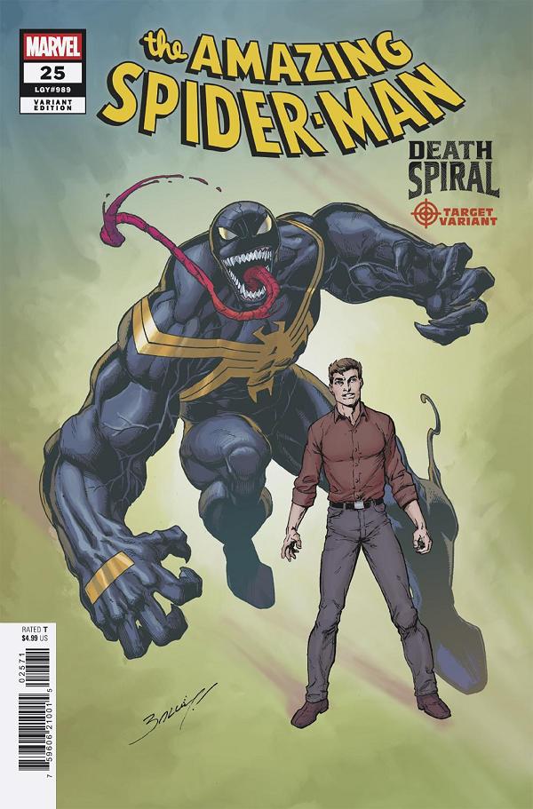 SHOCKED BY THE SINISTER SYMBIOTE! DEATH SPIRAL PART TWO! CARNAGE. KNOWS. Which means SPIDEY and VENOM team up again to stop the serial killer-symbiote. But instead of EDDIE BROCK, Peter uncovers another bombshell beneath Venom's mask - MARY JANE WATSON! And that's just the first SHOCKING REVELATION of this issue! Carnage isn't the only problem…Peter and MJ are going to have to patch things up if they want a fighting chance to stop new hyper-lethal villain, TORMENT's killing spree.