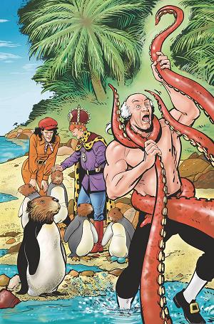 In this issue of AHOY's ultimate multiverse comic: a salute to rage! Earth-Omega's gritty Stinger II can't stand being cast away on campy Earth-Alpha! Dragonfly and Dragonflyman wage war on each other! Everyone's down to their very last nerve-and there are still two issues to go! Aaargh!