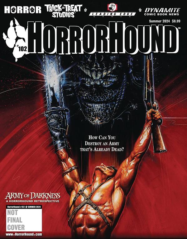 The wise-crackin' horror icon, known as Ashley J. Williams, has been tortured, tormented, and thrown out of time. That's where HorrorHound find him with our feature retrospective on The Army of Darkness . The third film in the Evil Dead franchise is one of the most licensed genre films of modern times, and our guide to the film comes paired with an exhaustive look at the comic books, action figures, statues, Halloween masks, games, and everything else that had turned AOD into a licensing juggernaut. Additionally, we look into the history of merging horror and comedy. Additional articles include a new "VHS Invasion" article, a "Collect This!" spotlight on Leading Edge Games, plus our features on movie and comic book news, as well as a look at the latest horror toys and collectibles.