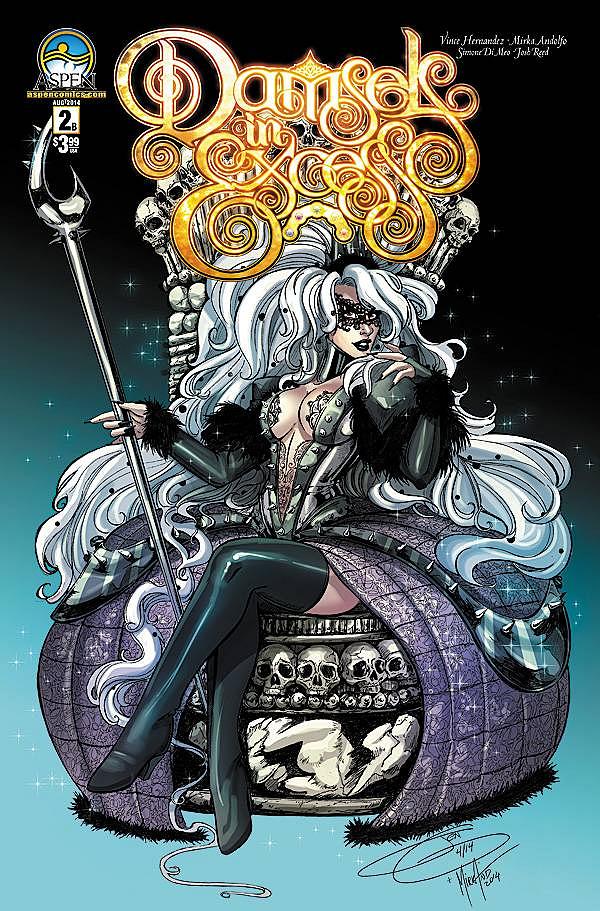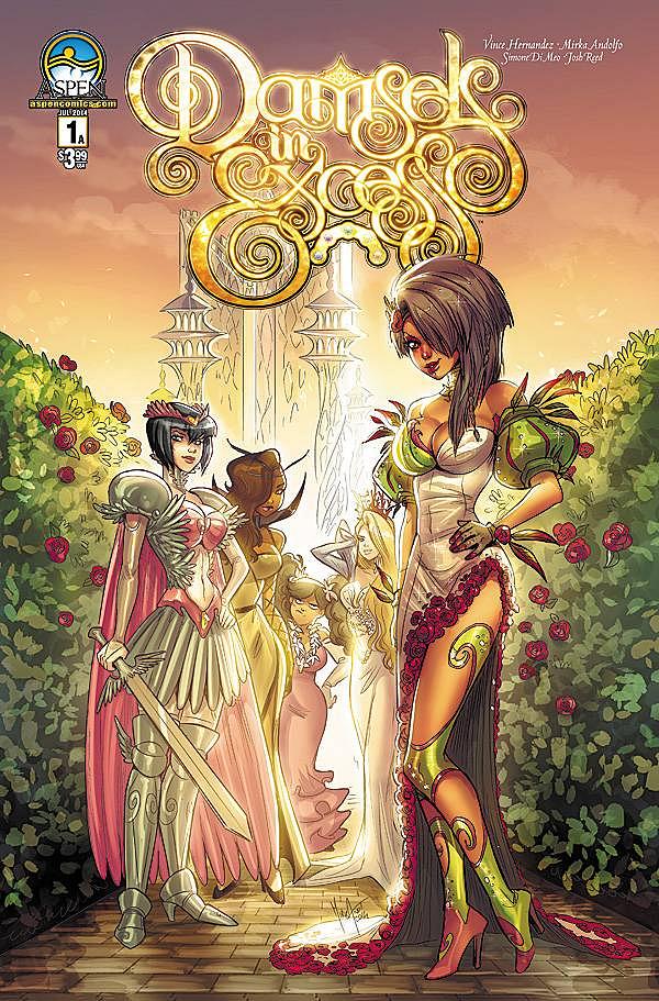 Five realms. Five princesses. Zero men. In the land of the Five Realms, the existence of men has long since been evaporated from the hearts and minds of women. Princess Bethany--ruler of Evanfar, the largest and most prominent kingdom, finds herself at the center of a vast conspiracy that could not only threaten her kingdom-but also her life! Journey to a place where magic is abundant, unicorns and ferrets can command armies, and five women struggle to find balance-and power--in an ever-changing fairy tale world! Creator Vince Hernandez and artist Mirka Andolfo present to you the newest Aspen hit series - DAMSELS IN EXCESS!