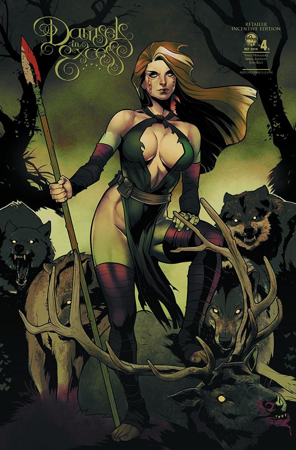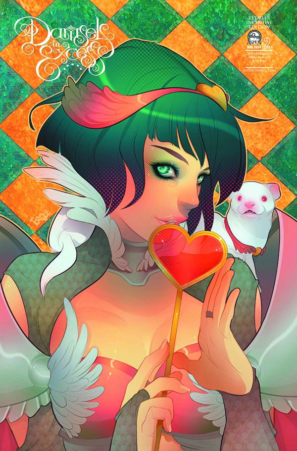 Five realms. Five princesses. Zero men. As the remaining ladies turn on Bethany following the reveal of the men's final wish, the princess finds herself alone in the Five Realms with everyone out to murder her. Yet, not all citizens-and rulers-of the Five believe in following the pleas of a dying gender, as she will discover. However, first, she must find a way to escape Crossman's Hall before Barra's soldiers can end her reign-and her life! Creator Vince Hernandez and artist Mirka Andolfo present to you the newest Aspen hit series - DAMSELS IN EXCESS!