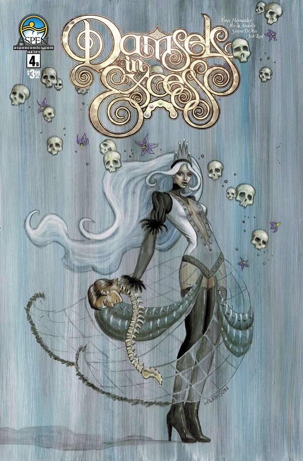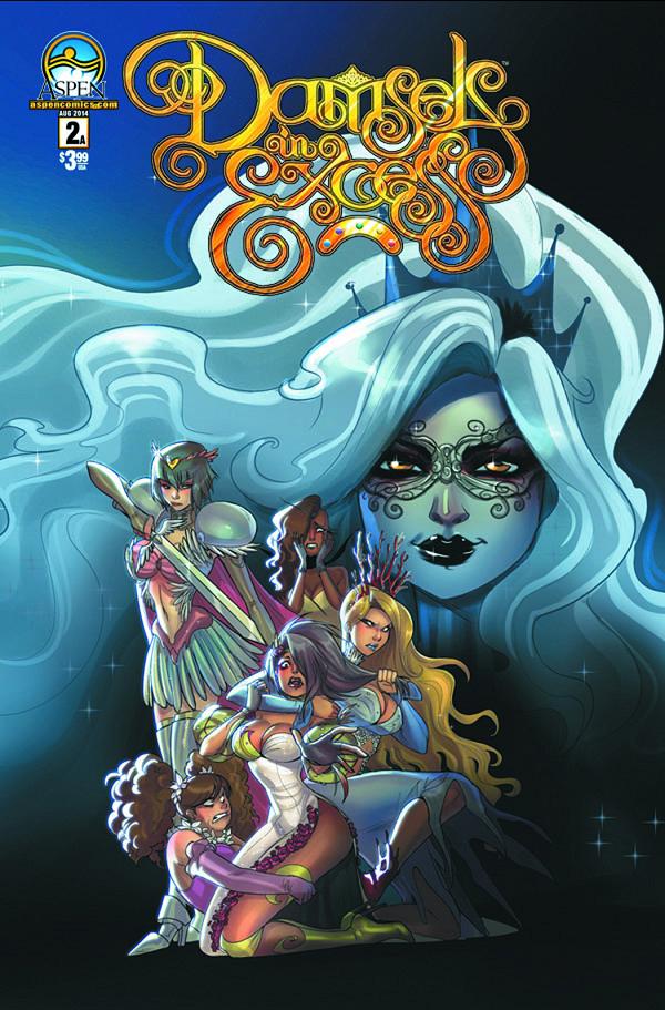 Five realms. Five princesses. Zero men. Princesses Bethany and Kimbelein must find a way to the Maiden Islands before Barra and Ilina find them first! However, the path across the Maiden Sea proves far more treacherous-as the pair soon discovers that the dangers they face are not only on land, but also out at sea! Creator Vince Hernandez and artist Mirka Andolfo present to you the newest Aspen hit series - DAMSELS IN EXCESS!