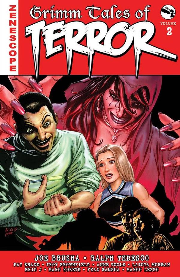 Horror returns to comics with Zenescope Entertainment's frightening and fun Grimm Tales of Terror Anthology Volume 2! From the classic literature of Poe and Hawthorne to modern day urban legends, this series re-imagines the creepy stories you know and love for a new generation of readers! Keres, the goddess of death, loves to punish those who she deems deserving of her wrath, and many unsuspecting people who cross her path are about to learn a harsh lesson about morality. This gorgeous 300 page hardcover collects 13 issues of one of the best comic book horror titles currently on shelves!