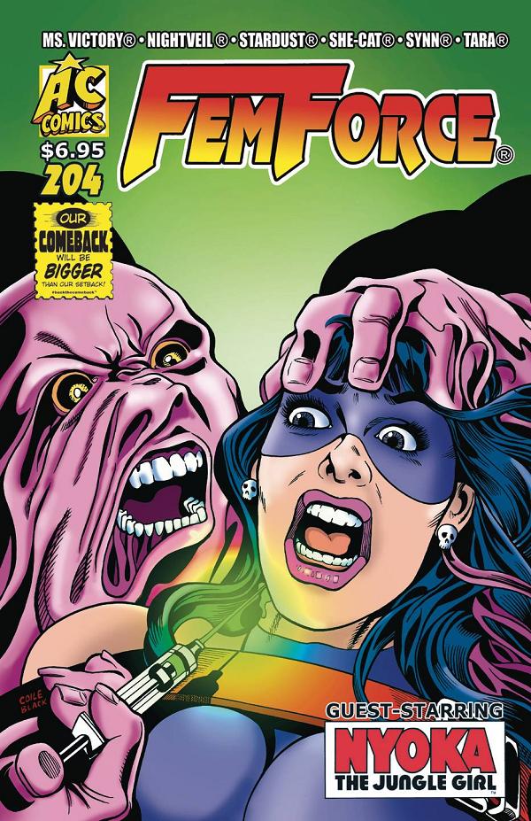 Beyond the dimensional portal hidden in the caves of Taragonia, the evil Loggriss extracts DNA from captives Nightveil and Nyoka. Loggriss formulates serum to create monsters used to attack the Earth. Tara and her jungle girls along with Ms. V and Femforce rush to combat this new menace.