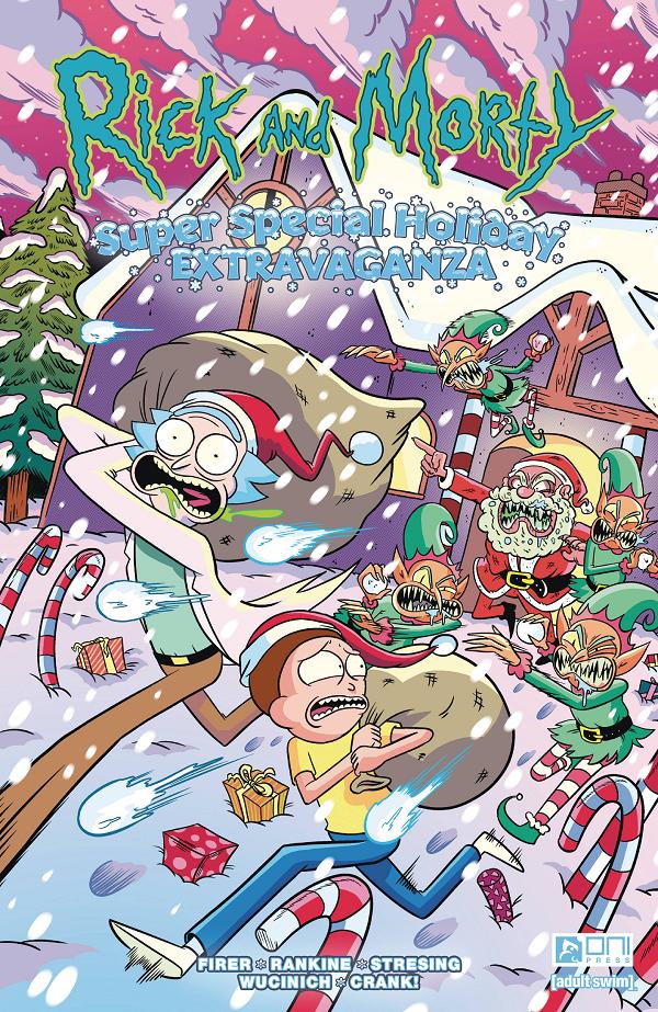 'Twas the night before Christmas . . . and things got squanchy! Join us, won't you, for 64 pages of egg nog-fueled mayhem in Rick and Morty's next titanic (and squarebound) super special! Featuring three jolly, tantalizing tales from Alex Firer (Rick and Morty: Rick's New Hat, Rick and Morty: The Space Shake Saga) brimming with holiday cheer, confusion, and . . . creeps? With art from Dean Rankine (Rick and Morty: Super Spring Break Special), Fred C. Stresing (Rick and Morty: Meeseeks, P.I.), and Warren Wucinich (Kriss: The Gift of Wrath), follow Rick and Morty as they accidentally summon a bevy of Christmas cretins, take over Santa's unenviable one-night job, and reenact A Christmas Carol as only they know how!