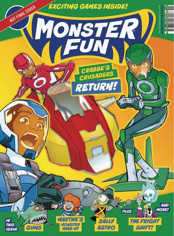 If you have the post Halloween blues, we have the perfect antidote! The Monster Fun November issue is here, keeping your excitment levels high as we thunder towards Christmas. Kid Kong, Gums, Sally Astro, the Fright Shift, Sir Render, Martha's Monster Make-Up and Witch Vs Warlock are all here to provide the laughs, while Britain's coolest new superteam, Crabbe's Crusaders, continue in their efforts to stop the monstrous Mutomatons from destroying the Earth. Plus, we have the spectacular conclusion to the first Pop Grrrl strip!