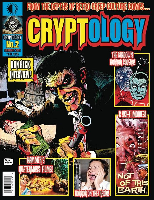 "Heh-heh-heh, it's me again-the Cryptologist-and my ghastly little band have cooked up a few more grisly morsels to terrorize you with! Amongst them is Roger Hill's conversation with diabolical Don Heck, along with a complete 1950s story by that fabled horror comics artist! For something even more gruesome, Steven Kronenberg slices up his favorite severed hand films! Barry Forshaw brings back the otherworldly horrors of Hammer's Quatermass , while Tim Leese spends more Hammer Time on that studio's output. Then, Richard Hand resurrects spooky old radio shows, while editor Peter Normanton prepares a viewing of horror-inspired covers from the Shadow's own 1940s comic book! Peer into the dark side with TwoMorrows Publishing's latest terror-scribed just for retro horror fans!"