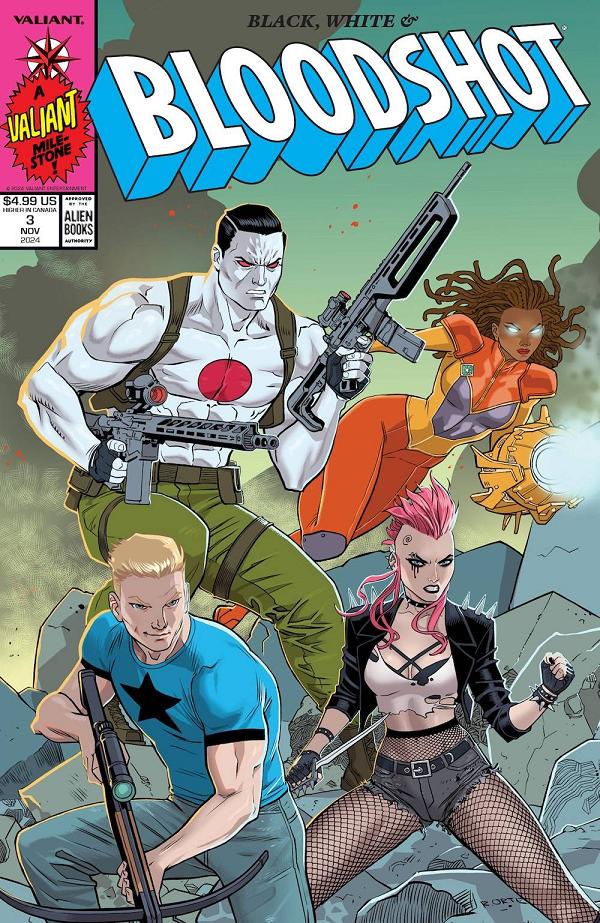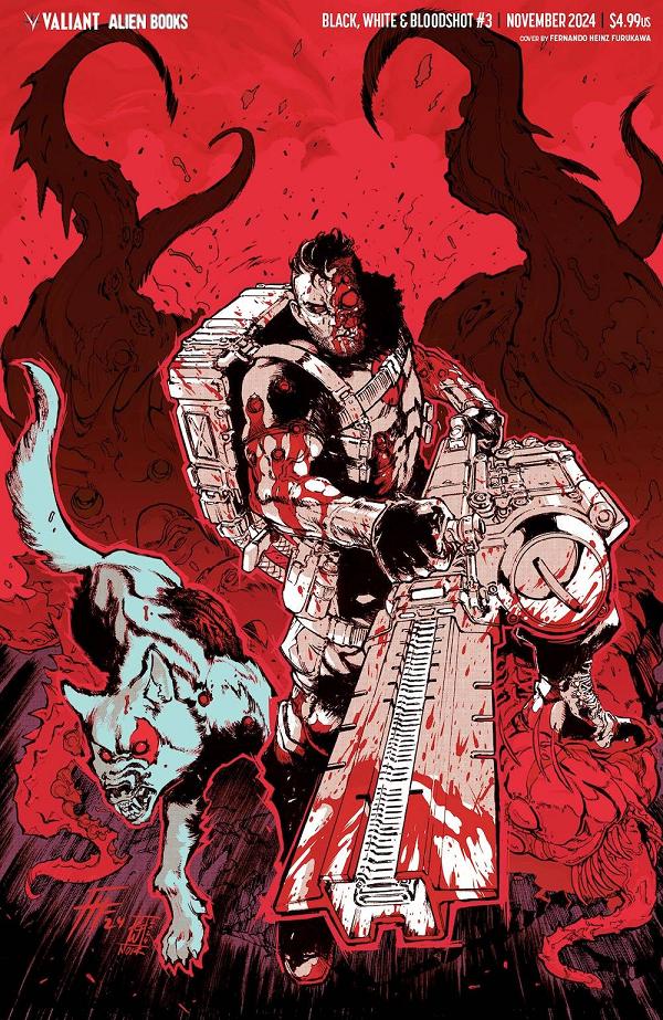 Return to the world of Bloodshot in the thrilling third installment of the Black, White, and Blood anthology! Tomas Wortley, Rodolfo Santullo, Fernando Dagnino, and Mirka Andolfo deliver new and brutal challenges! Each tale delves deep into Bloodshot's psyche, exploring themes of loyalty, revenge, and the line between hero and villain in stark black, white, and blood-red shades. Featuring stunning artwork by Gabriel Kikot, Sebastian Navas, Fernando Dagnino, this issue is a must-read for fans of intense superhero action!
