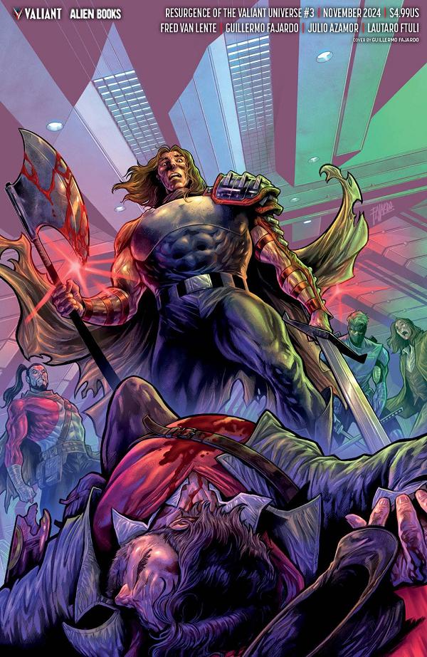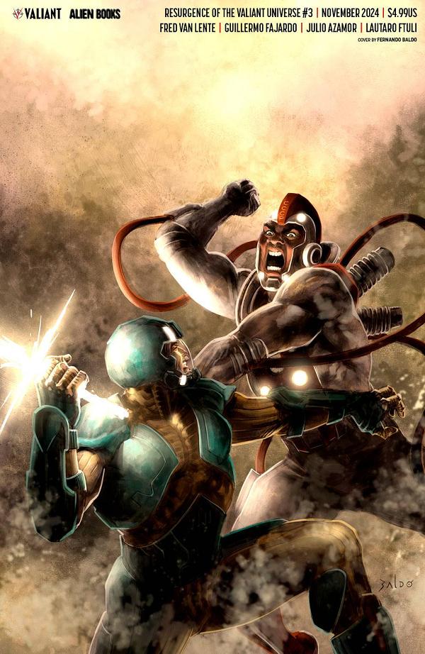 The fall of G.A.T.E. begins here as Silk's Unity team launches a brutal assault on B.O.B., leading to a blood-soaked showdown! It's brother against brother and friend against friend as loyalties will be tested and betrayals run deep. As the chaos unfolds, Tama encounters an unlikely ally in the Faraway. Don't miss the explosive third issue of Resurgence of the Valiant Universe!