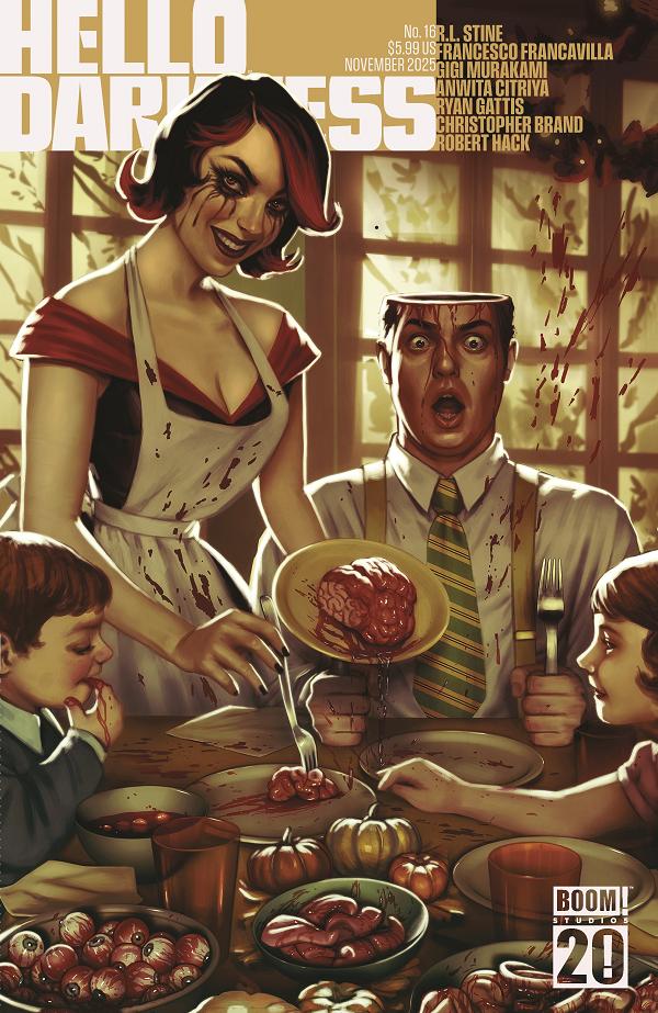 Your favorite monthly horror showcase continues with a new wave of (spectral) nightmares! In this issue of the acclaimed anthology, horror legends R.L. Stine and Francesco Francavilla bring their haunting tale “The Life and Death of Lucas Dreamwalker” to a gripping conclusion! Then, Gigi Murakami warns against all work and no play in “When I’m Dead,” and Robert Hack returns with more of his wickedly offbeat “I Can’t Take You Anywhere.”