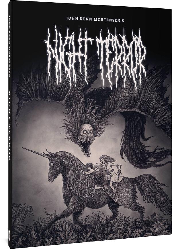 For horror fans of all ages, a spinetinglingly creepy and darkly comedic picture book. Fantagraphics' third release in English from Danish cult illustrator John Kenn Mortensen. Gruesome, spindly figures gather outside a house, then spirit away a dreaming youth, bed and all. The stage is set for 32 skin-crawling poems imagining various children's nightmares, all with sequential illustrations by Danish horror master Mortensen. His eerie visions fade to black at the edges, like a dreamer unable to shift their focus, and inspire delicious terror all by themselves. Similarly, the short poems each evoke a distinct sense of dread for the sleeping imagination to expand upon; together, the words and pictures conjure a nightmarish world tinged with pitch black humor. The sequences splay across double-page spreads, evoking Edward Gorey gone grand scale, and grand guignol. For those of a nervous disposition, read in bright sunlight. For those in search of a nervous disposition, take two before bed.