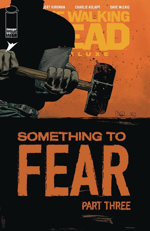 "Something to Fear" continues! The Saviors strike. This deluxe presentation in stunning full color also features another installment of Cutting Room Floor and creator commentary.
