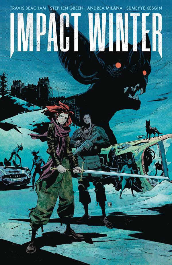 Uncover the origins of Audible's #1 hit audio drama series! Darcy, a young and headstrong fighter looking to prove herself. Rook, a wandering centurion needing a second chance. Penelope, a newly awoken vampire seeking revenge. Their stories unfold in the dark corners of legend, where vampires are real and waiting for the opportunity to step from the shadows. Collected for the first time ever, these stories will entice new readers and longtime fans of the Audible series to explore the world of Impact Winter with creator/writer Travis Beacham, and artists Stephen Green, Andrea Milana, and Sumeyye Kesgin. Collects Impact Winter #1, Impact Winter: Rook #1, and Impact Winter: Evenfall #1.