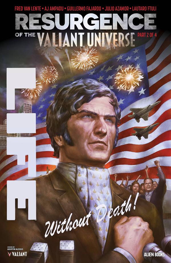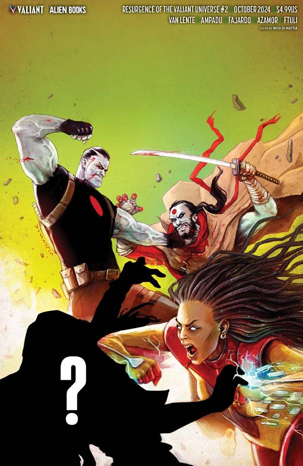 Writers Fred Van Lente (ARCHER & ARMSTRONG) and AJ Ampadu (NINJAK VS. ROKU) unite to spearhead the next chapter of THE RESURGENCE OF THE VALIANT UNIVERSE! Dr. Silk's utopian vision shatters reality with Master Darque's dark magic, unleashing global chaos. Valiant's heroes - X-O Manowar, Bloodshot, Eternal Warrior, Ninjak, Rai, and Faith-face unprecedented threats as battle lines are drawn. The dead rise to join the fight. Livewire learns of [SPOILER]'s return, Eternal Warrior takes sides, Bloodshot is outed as a traitor, and Ivar makes a crucial discovery. The universe trembles as alliances shift and the battle for survival intensifies!