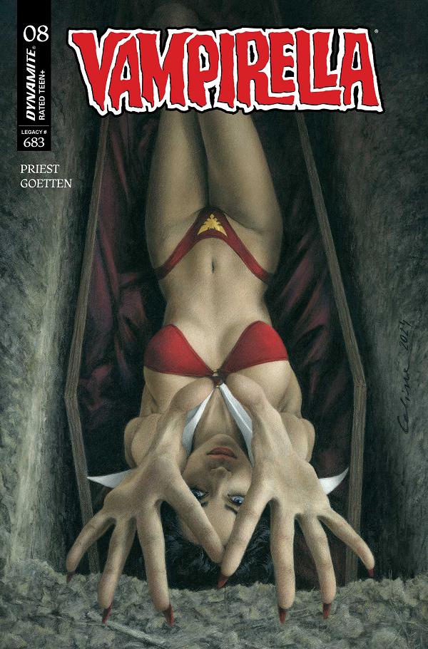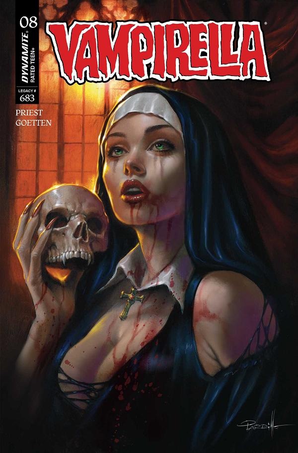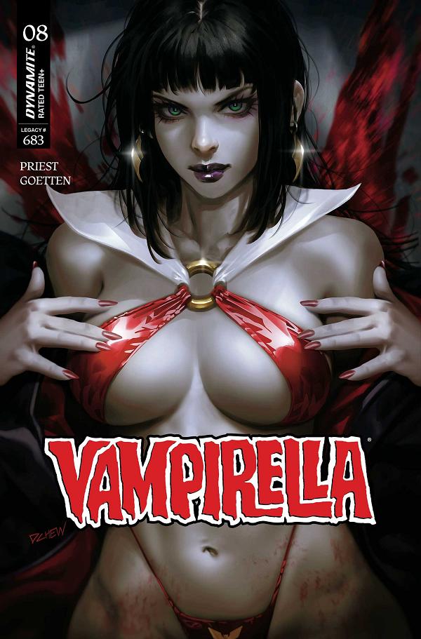 MEMORIES — NOT ALONE IN THE MOONLIGHT! In this issue: The enigmatic living algorithm known as ARIS taps into Vampirella’s mind in its quest to access the mysterious aliens beings known as The Host. The resulting journey through Vampi’s history — from her extraterrestrial origins through her life on Earth — may answer some of the most fundamental questions about the Daughter of Drakulon’s existence! Extrasensory guides CHRISTOPHER PRIEST and DAVIS GOETTEN open the doorways of perception in Vampirella #8 — featuring intuitively intriguing covers from LUCIO PARRILLO, DERRICK CHEW, JOSEPH MICHAEL LINSNER, ELIAS CHATZOUDIS, and cosplay by RACHEL HOLLON!
