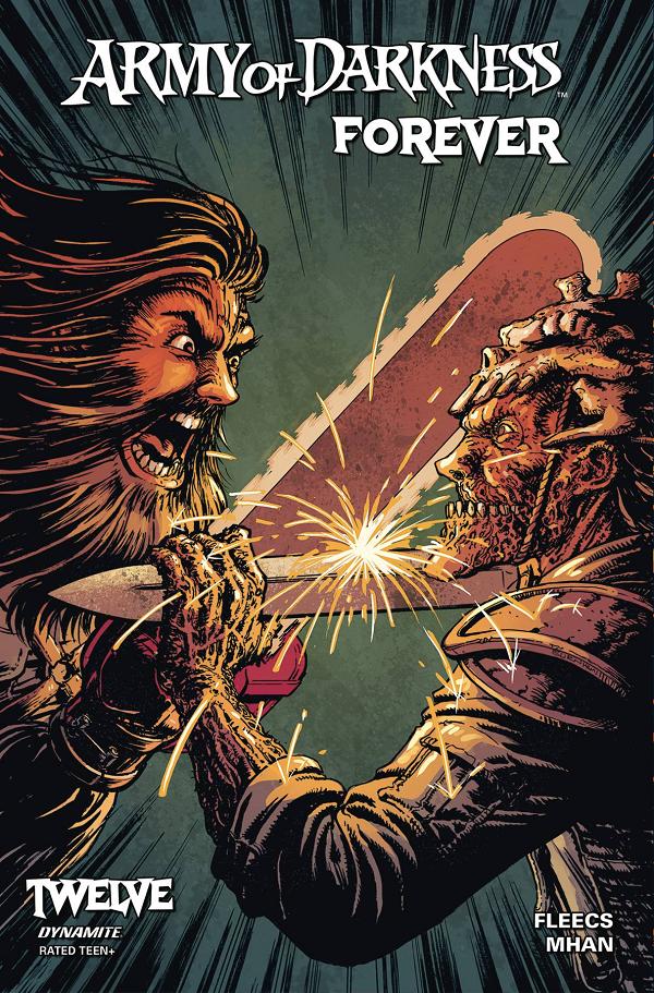 The Legendary ASH WILLIAMS is back destroying Deadites past, present and future! Issue #12: it all ends here! Our timelines have merged and our players are all in place for a glorious blow-out orchestrated by the pure evil that is.... the Necronomicon! Where will fate send Ash next? Find out inf the end of Army of Darkness... Forever! And be sure to be here next month for the first -ever AOD Gore-tacular! Picking up immediately after the ARMY OF DARKNESS DIRECTOR'S CUT, this new series features four incredible covers by horror icons, including series writer/Mastermind Tony Fleecs, artist Chris Burnham, the zombie king Arthur Suydam and Bjorn Barends! ALL COVERS CARDSTOCK