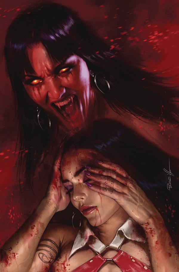 In an effort to save her life, Draculina, Vampirella's evil twin, has retreated into the astral plane known as "The Dark World", a holodeck-style realm that responds to her worst fears, where she finds herself trapped in the Warren-era New York City of 1969, pursued by bloodthirsty creatures of her own creation, and under arrest by the only cop left alive in the city! Left without options, Draculina is forced to turn to Vampirella, her most hated enemy, for help! ALL COVERS CARDSTOCK
