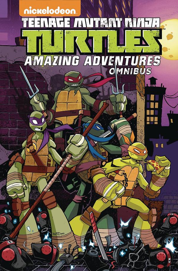 Relive all the action from Nickelodeon's 2012 animated TMNT series in this graphic novel collection of stories based on the show! Emerging from the sewers for the first time, the brothers will face New York City, their enemies, and... delicious pizza! Younger and ninja-ier, Leonardo, Donatello, Michelangelo, and Raphael will have to work together to grow into the Teenage Mutant Ninja Turtles. This omnibus collects all 14 issues of the series and the three-issue miniseries Robotanimals .