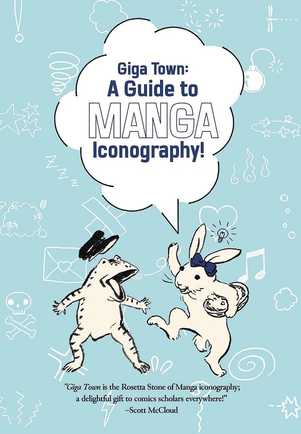 Manga symbols - "manpu" in Japanese - are iconic or symbolic expressions used uniquely in manga, such as sweat drops, popping veins, and smoke puffs. Giga Town: A Guide to Manga Iconography! is (probably) Japan's first guide to this manga iconography, collecting and explaining these symbols, with a short manga featuring the frolicking animals of the famous Japanese scroll Choju-jinbutsu-giga to explain each one!
